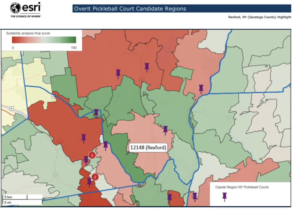 And that’s it! With just a few solid hours of data gathering, mapping, and suitability analysis, we found an ideal home for Overit’s new indoor pickleball court in Rexford, NY.