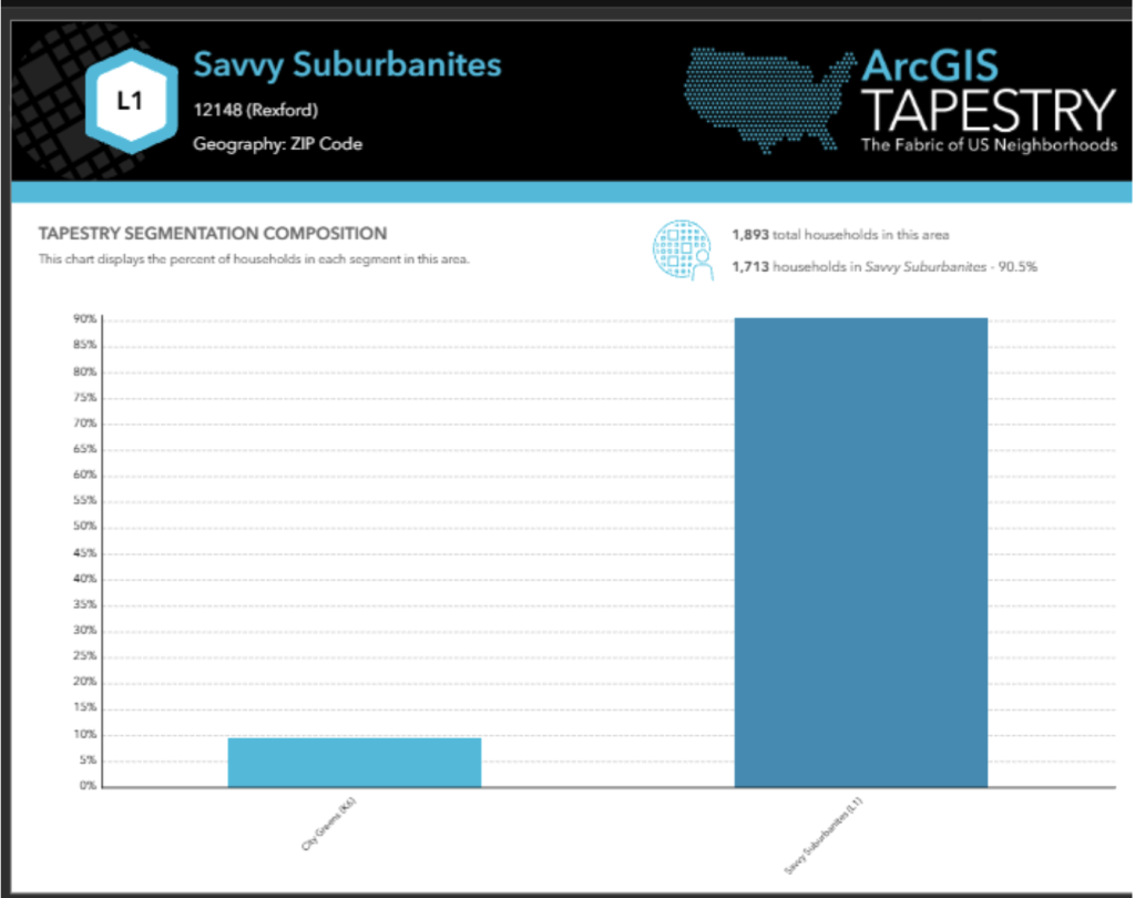 With a few clicks, we identified that Rexford, NY contains just two Tapestry Segments.