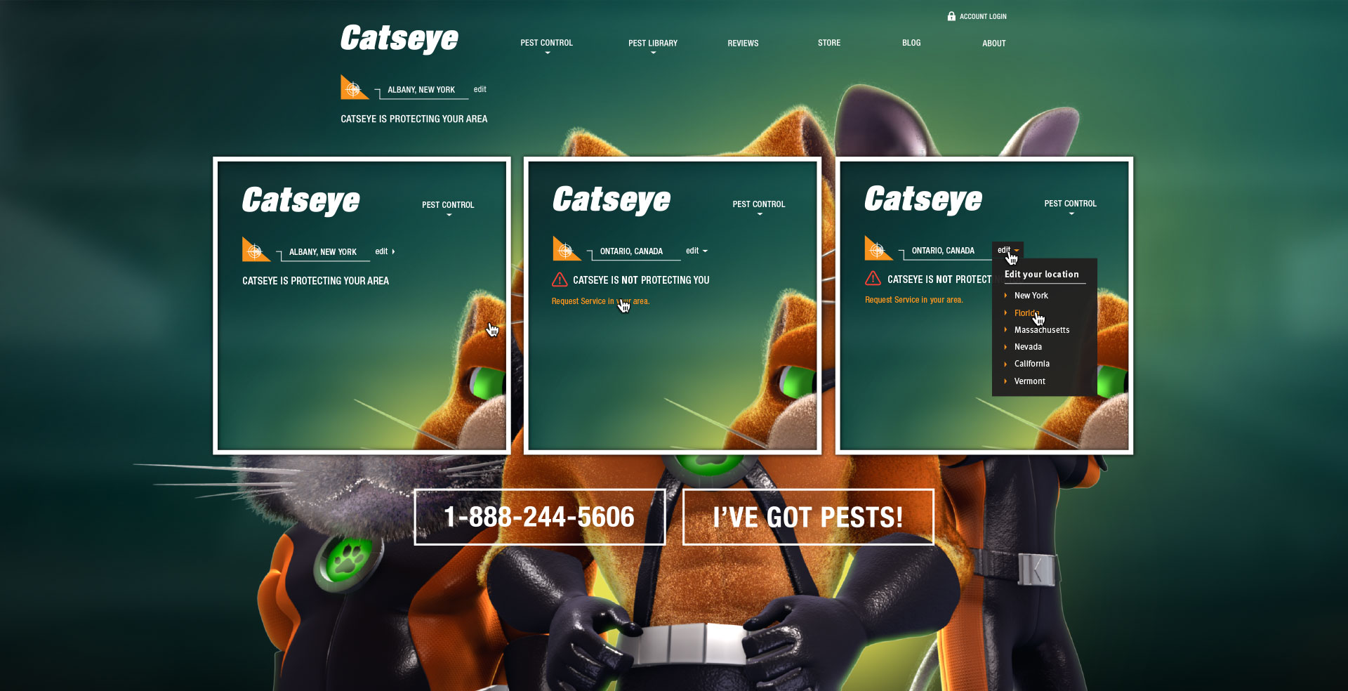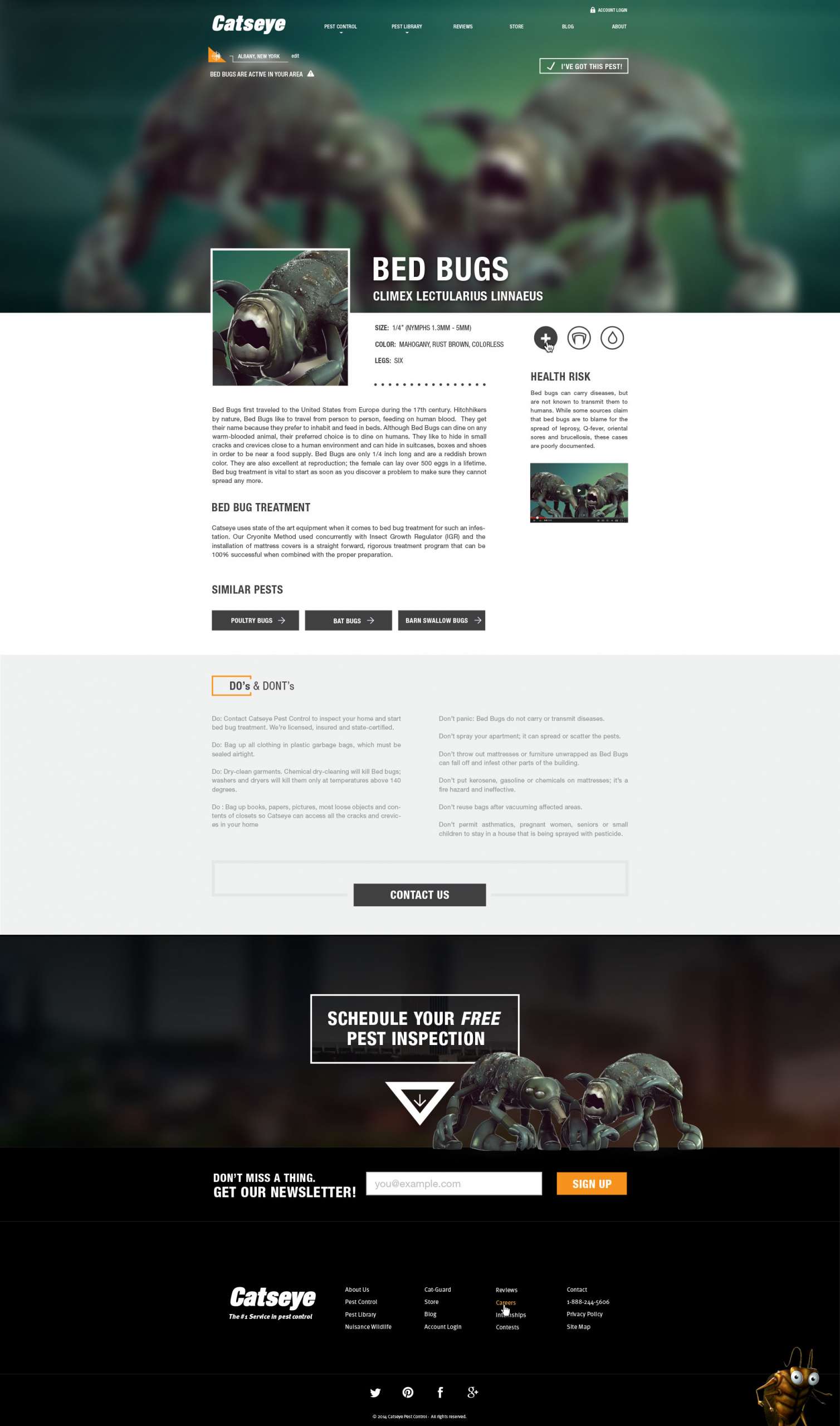 Understanding customers do 57% of their research online and self-directed, Catseye gave consumers the information they needed to associate the brand with expert-level pest control. A comprehensive pest library was built, providing consumers with information on key pests and nuisance wildlife, with custom illustrations for each common critter.