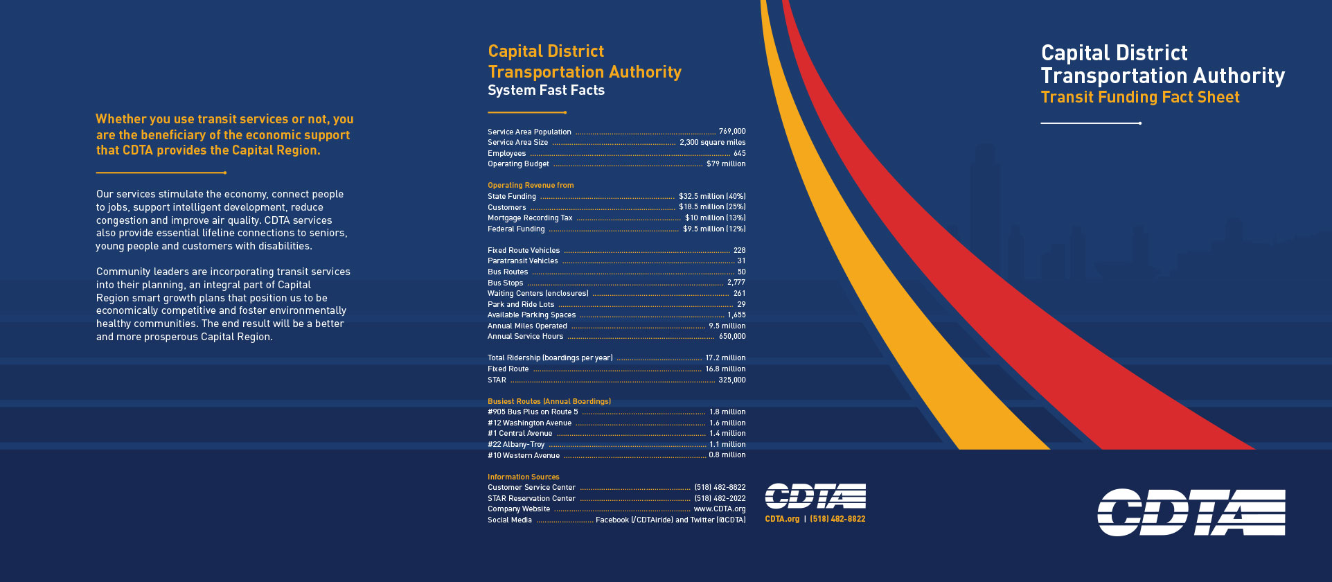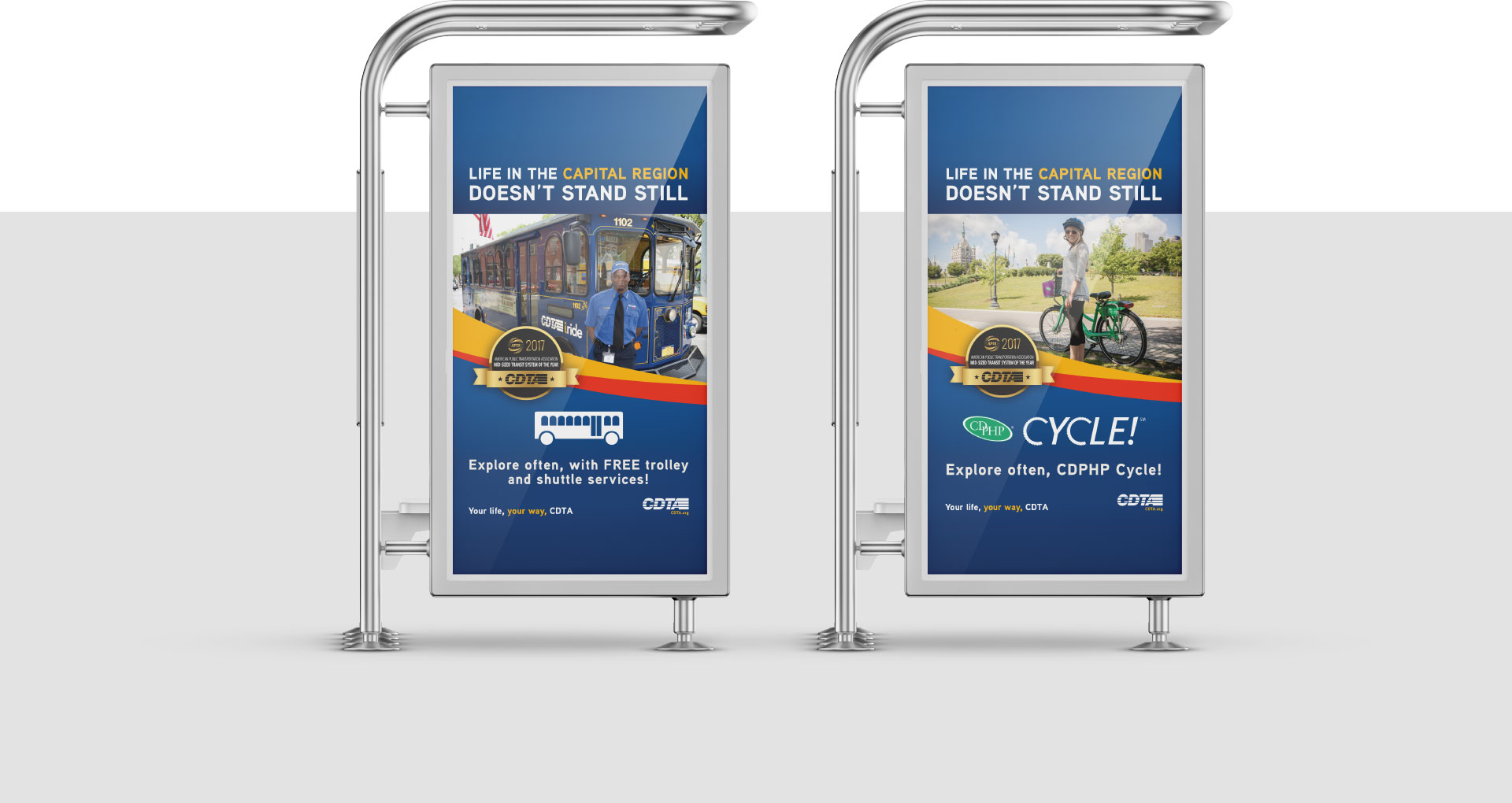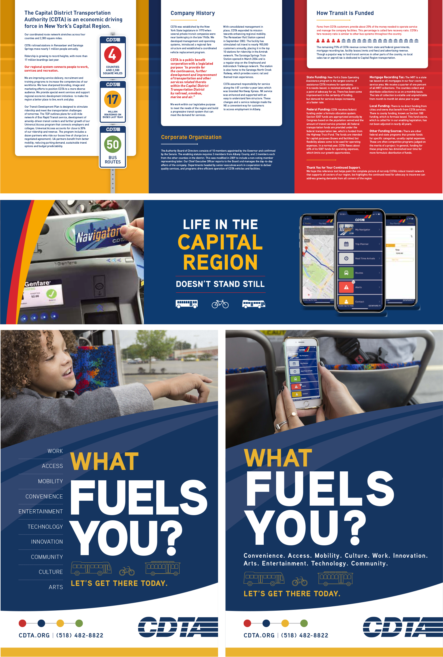 As the brand has continued to grow, Overit has been there to help CDTA message new services and initiatives, and to tell great mobility stories via a diverse mix of marketing collateral. Whether a bus shelter, a poster, a training brochure, a fare schedule, an information sheet, or even graphics for CDTA-branded merchandise, Overit has worked to tell the CDTA story with excitement.