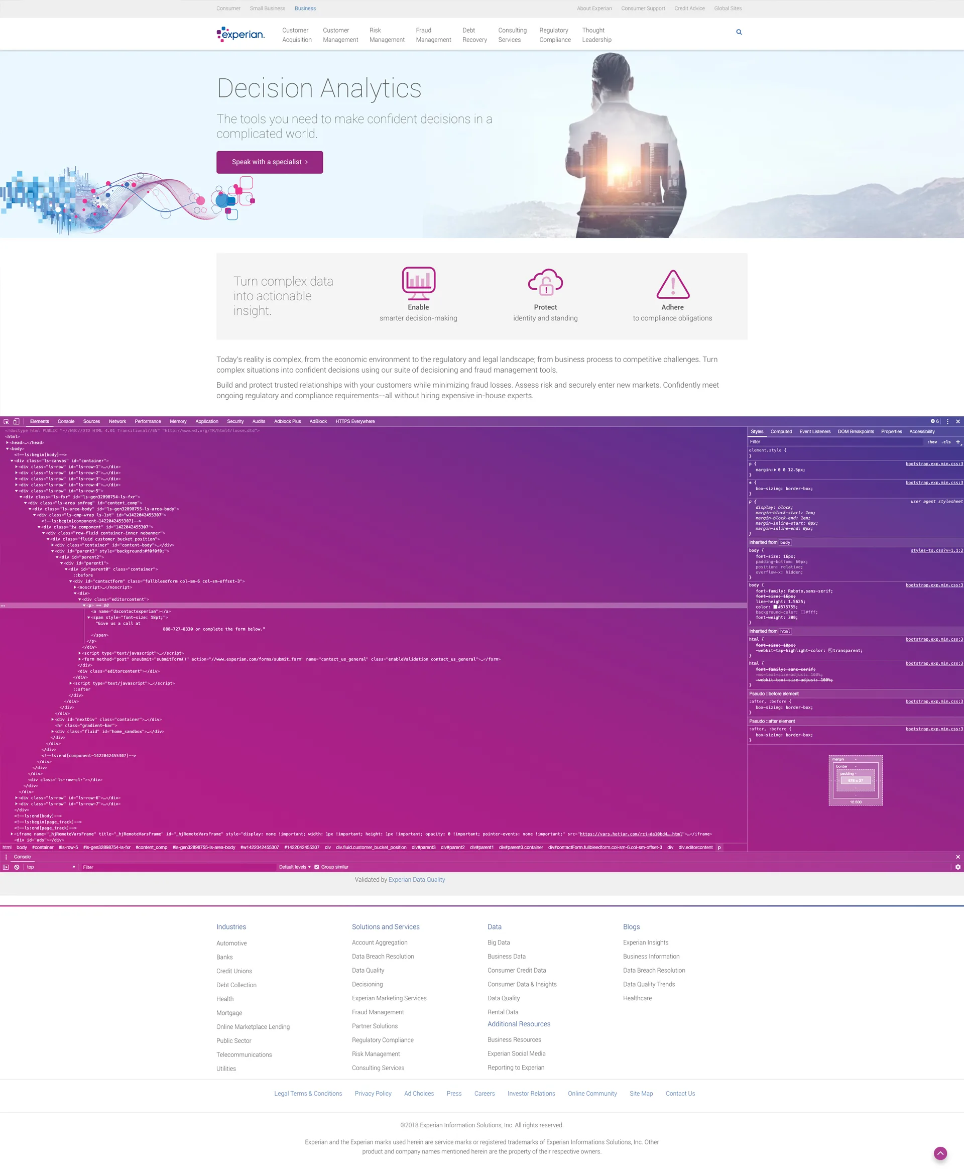 Experian approached Overit in need of a consultative partner to improve messaging and to identify technical site constraints impacting organic search visibility. . To uncover the answer, Overit performed comprehensive website and brand auditing for two Experian properties — Experian Data Quality and Experian Decision Analytics.