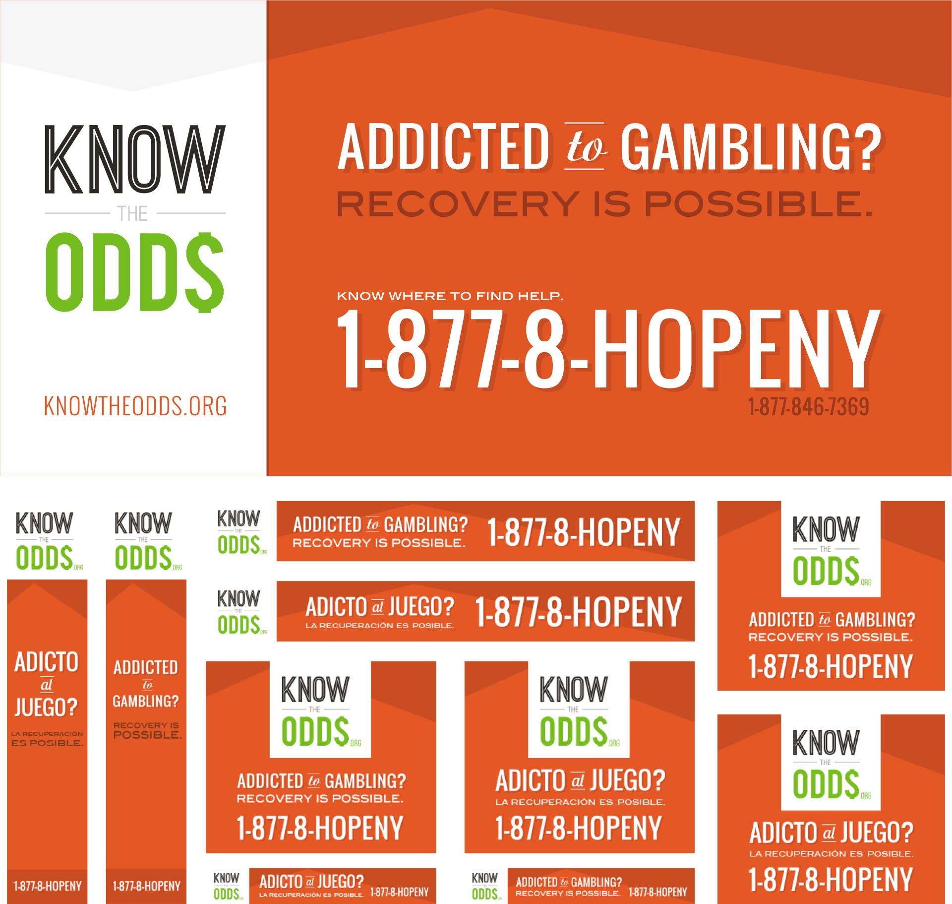 Our commercials raised awareness of problem gambling and its risks while directing viewers to the NYS HOPEline and KnowTheOdds.org. These 15-second and 30-second ads were used in a statewide television campaign, as well as online in pre-roll advertising. Radio ads matching the campaign’s tone and messaging complimented our motion pieces.